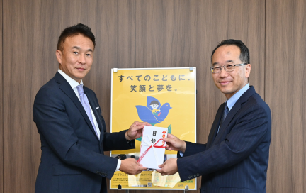 令和5(2023)年9月14日には、プレジィール執行役員の小林正典氏がこども家庭庁を訪れ、吉住啓作支援局長に寄付目録を贈呈されました。プレジィールの小林執行役員は、「パティシエの仕事体験をしたこどもたちが、お菓子を作るよろこびだけではなく作ったお菓子を大切な人にプレゼントすることで、笑顔が繋がってほしい。」という願いを語りました。こども家庭庁の吉住支援局長は、体験の機会提供という形でのご支援に対し、深く感謝を伝えました。