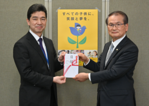 このほど、大東京信用組合(本店:東京都港区)より、「子供の未来応援基金」に100万円をご寄付いただき、令和5年2月17日、同組合の内田通郎理事長より内閣府の黒瀬敏文審議官(子どもの貧困対策担当)に、寄付目録が手渡されました。