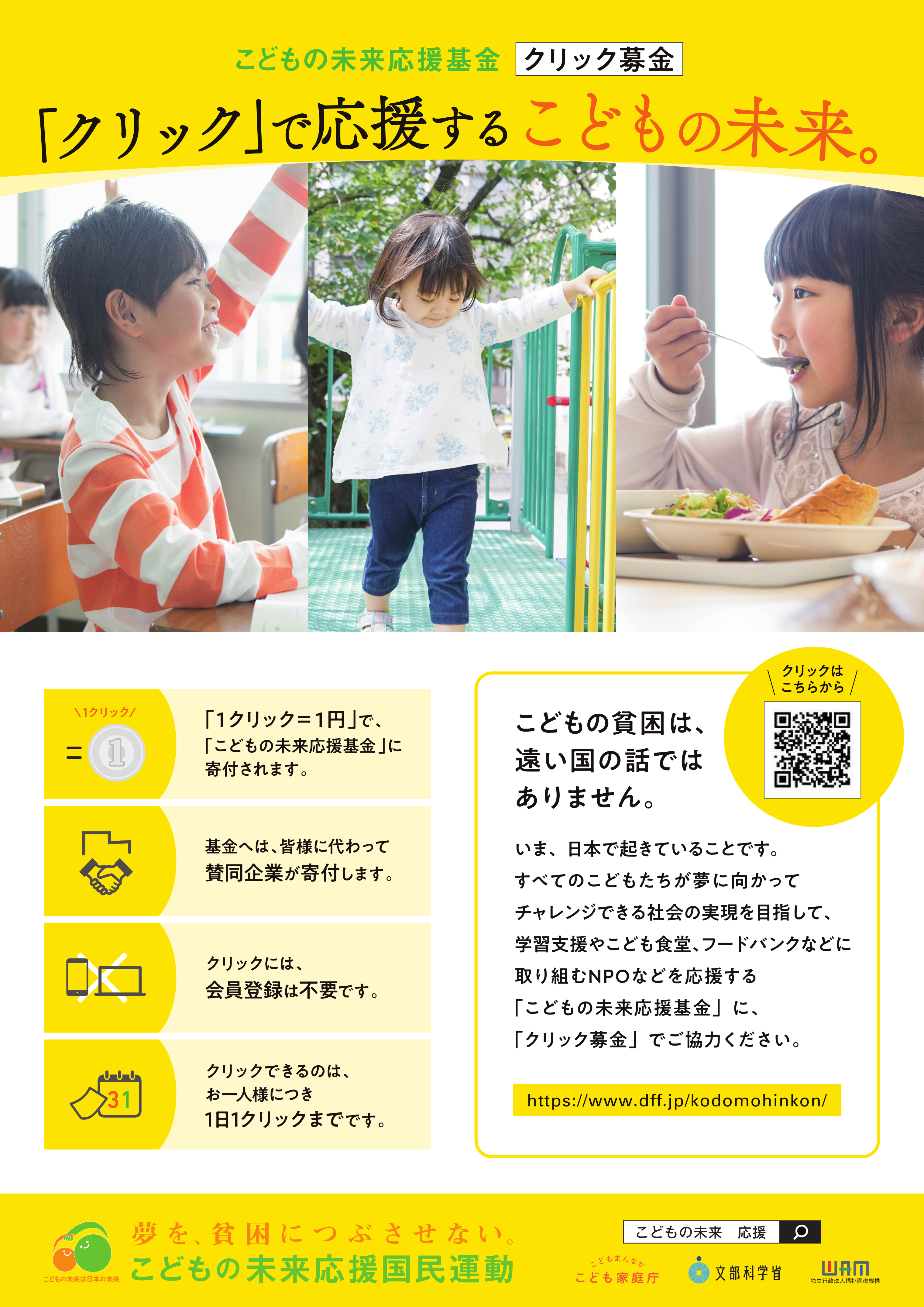 - 2022.05.02クリックすると無料で寄付できる! 子供の未来応援基金「クリック募金」