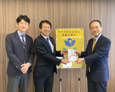 このご寄付は、ベイフードサービスが運営するオリエンタルランドグループの従業員食堂において、今年3月から実施している「こどもスマイルごはん」によるものです。「こどもスマイルごはん」は、一食当たり30円の寄付金が含まれたセットメニューで、本メニューの販売を通じて集まった寄付金に、オリエンタルランドが同額を上乗せした合計金額を「こどもの未来応援基金」にご寄付くださるという取組です。このたびは今年3月から6月末までの合計667,560円を、「こどもの未来応援基金」にご寄付くださいました。