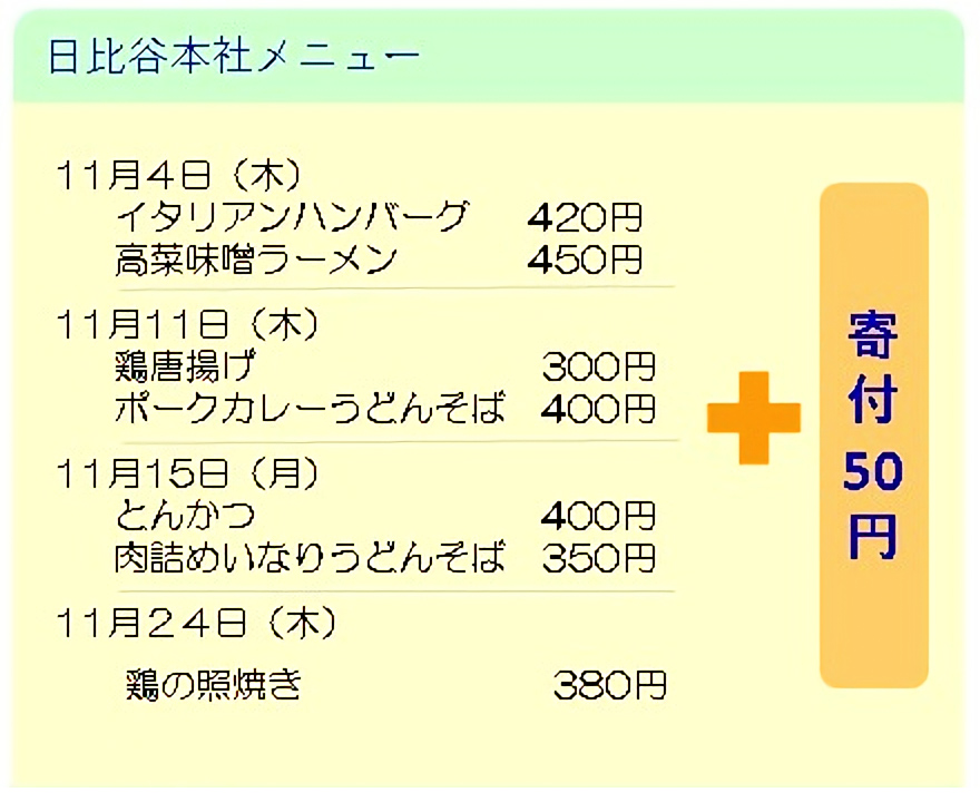 11月11日の寄付金付きメニュー(日比谷本社)