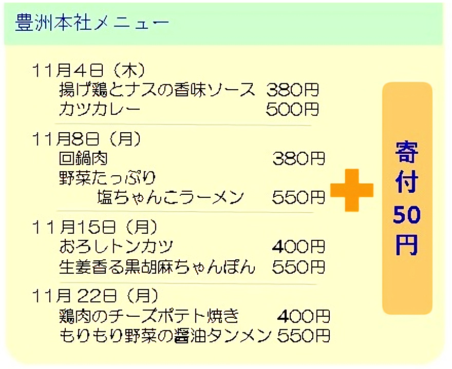 11月11日の寄付金付きメニュー(豊洲本社)