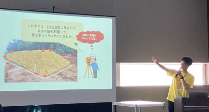 8月26日の中学生を対象とした「海から学ぼう東京港」では、船の甲板からクルーズターミナル、コンテナふ頭、連絡橋、水門等の港の主要施設や海洋土木に欠かせない作業船等を見ながら、同社社員による説明を聞くことができました。下船後は会議室において、地球温暖化とブルーカーボン生態系に関する学習会が行われ、同社が2000年頃から取り組んでいるアマモ場造成についても紹介されました。また、測量体験会も開かれ、実際に建設現場で使用されているiPadアプリや測量機での測量を体験することができました。