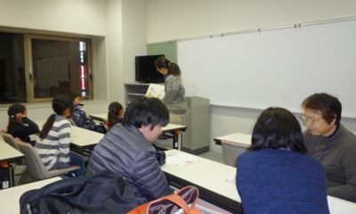 部屋の奥では、勉強後の読み聞かせが行われています。子供たちだけでなく、講師の方々も興味津々の内容です。手前では、講師の方々の専門分野を生かした学習支援が行われています。