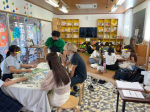 中高生のためのフリースペースで、大人と交流するこどもたちの様子