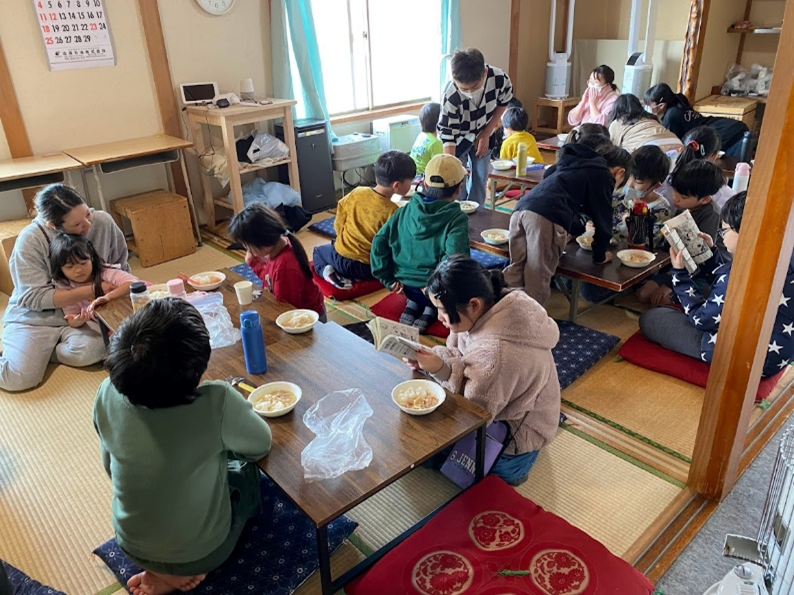 1.食堂は毎週土曜10時~14時実施。10時30分~受入、こどもは健康状態を確認し、遊びの見守りや学習支援も行います。