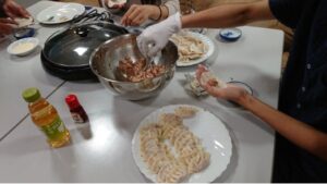 居場所活動「だいち」で餃子を作る様子