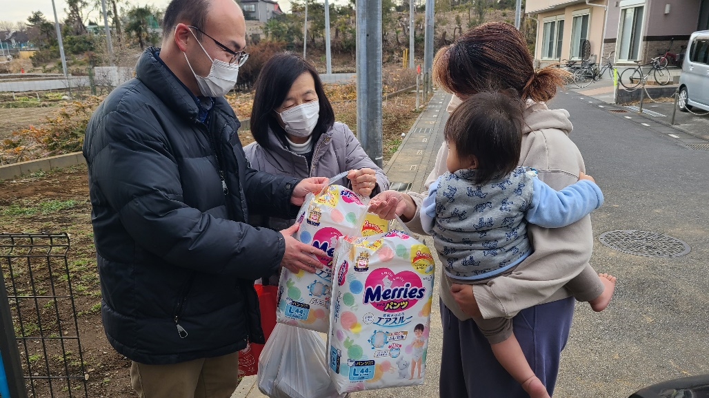 子育て世帯にオムツを配達する様子