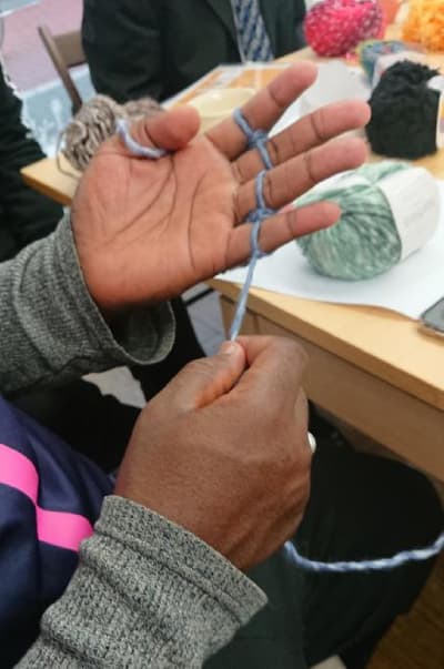 居場所づくりとしてのグループアクティビティで、編み物を実施しました。