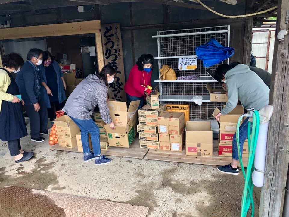 食品ロス削減をはかる企業から、ロスとなった食料品をいただき、各市の「子ども食堂」ネットワークが会員として食料品を受け取り、必要な人へ届ける。代表宅の蔵を保管庫とし、週2回程度開く。