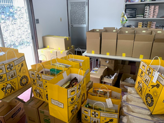 パッキングが終わった各家庭にお届けする食品