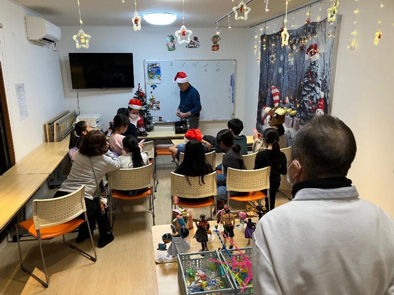 冬休みのこどもの居場所(長期休み、ランチ、おやつ付き)Xmasビンゴ大会。支援団体からの景品の寄付等を貯めておいて開催しました。