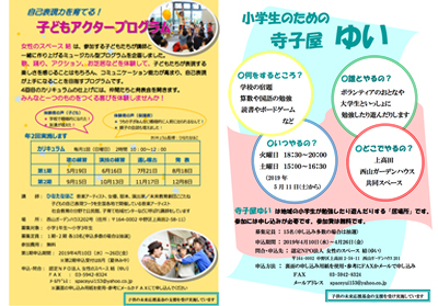 ひとりで過ごすことの多い子供たちを対象に、「子どもアクタープログラム」と「小学生のための寺子屋ゆい」を実施します。