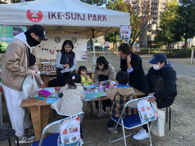 豊島区の公園イケ・サンパークのイベントにクリスマスアルバム作りのワークショップとして出店したときの写真です。たくさんのこどもたちが参加してくれました。