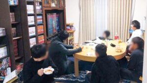 居場所では感染対策に留意して、若者と職員が食事をしたりゲームをしたりして過ごします。