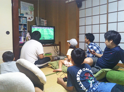 ホームに集う子供たちが、異年齢で仲良くゲームをしているところ。 日常風景のひとつである。