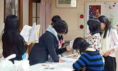 児童養護施設「恩寵園」で暮らす子供たちが、自主活動として図書管理ノートの作成と掲示板作りをしています。好きな本を書いたり、園のみんなにお知らせしたいことなどをまとめます。