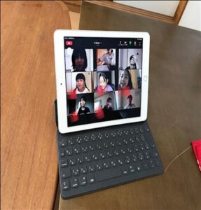 オンラインのzoomを利用して学生ボランティアと小学生、講師の交流をしているところです。