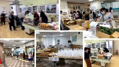 新型コロナ禍の2020年6月に公民館にて、感染防止に注意し、お弁当や食品・野菜やお菓子等を配布。70名の参加がありました。