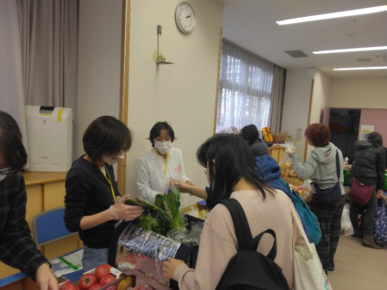 ・フードパントリーを毎月5回ひと月の参加合計200世帯規模で実施しています。フードパントリーの会場では、食品提供とともにリサイクル衣類や子どものおもちゃ・学用品の提供も行います。お茶とお菓子のカフェコーナーを設け、コミュニケーションや情報交換の場とする。また会場で年に数回、保育専門学校学生や中高校生ボランティアの協力により季節のお楽しみ企画を行います。