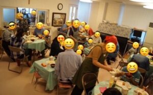 コロナ禍前の子ども食堂の様子です。コロナ禍がおさまったら、またみんなで一緒に食べようね。それまではお弁当配食とフードパントリーで子供達と子育て世帯を応援します。