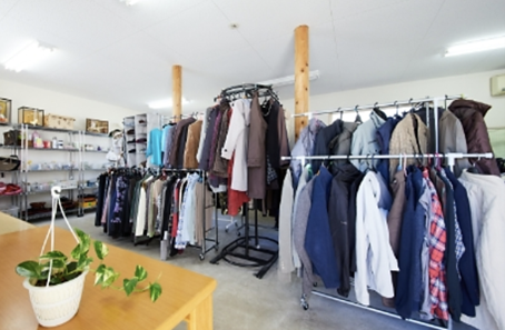 リサイクルセンターの様子です。衣類、靴、生活雑貨、食器、本、学用品などが寄せられ、多くの方に立ち寄っていただいています。