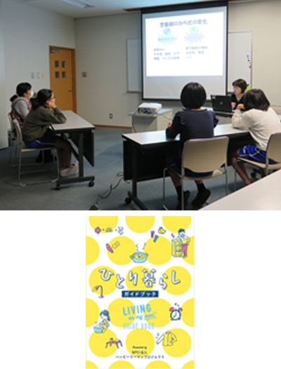 - (第2回子供の未来応援基金の支援で 作成した「ひとり暮らしガイドブック」を使用)