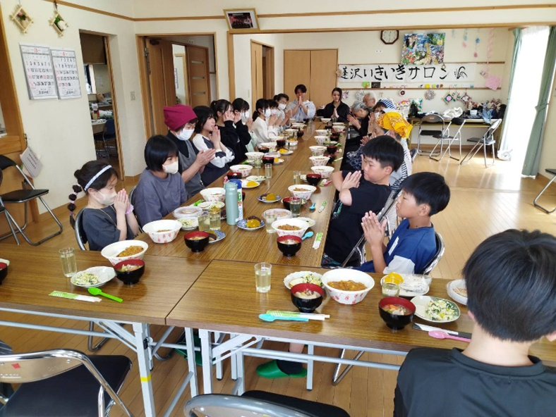 不定期開催の「ごちゃまぜ地域食堂」にて世代を超えて食事をする様子