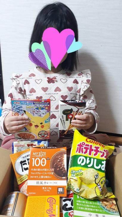 こどもを持つ家庭に食料を郵送して受け取ったときの子どもの喜んでいる姿