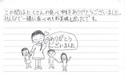 「子ども食堂」への食料支援を通じて、子供たちからお礼のメッセージが届きました。