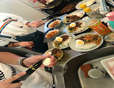 子供たちと一緒に昼食のビビンバを作っている様子です。