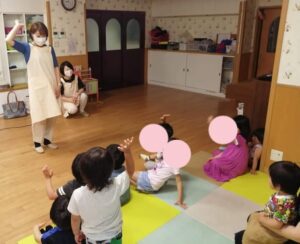 発達段階を考え、年齢や対象に合わせた生と性の教育講座を実施しています。写真は、幼児対象に、プライベートゾーンのお話しや体や心を大事にしてもらう内容を伝えています。興味をもって聴いてもらえるよう導入も工夫しています。