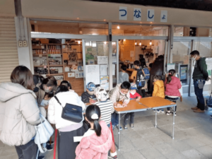 屋内の居場所「つなしょ」には、人と人がつながる場所という意味があります。子供だけでなく、さまざまな人が「第3の居場所」として自由に過ごしています。