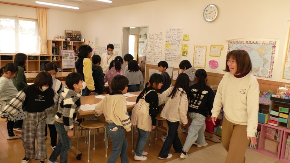コロナ禍で塞いだこどもの心を回復する支援として音楽セラピー体験教室を開催し、リズムにのせて身体を動かす体験を行いました。