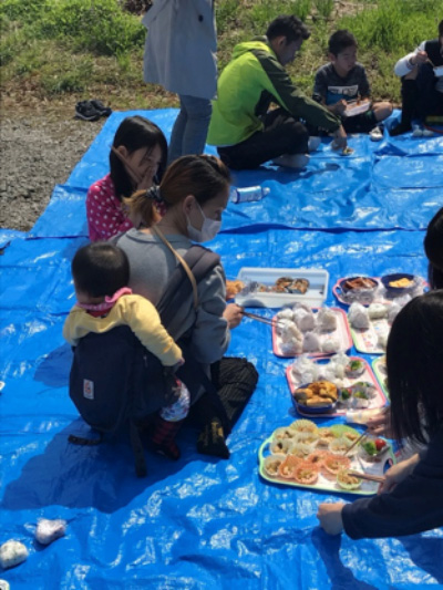 手づくりのお弁当をもって近くに散歩(子供食堂)。