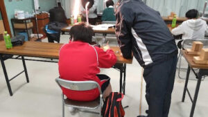 ・学習支援サポーター5名体制で学習支援(現在、町内在住の元校長が学習サポーター、サポーターの増員は随時行っていく。)、1時間程度の学習時間が適当(2限)として設定。