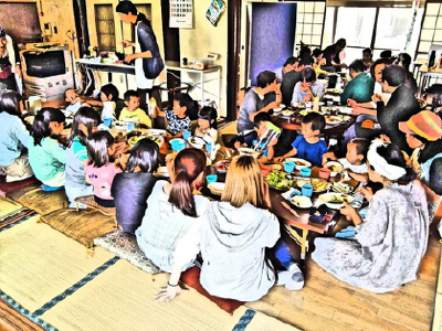 「なかよし食堂」の様子。食堂だけを行うのではなく、学習支援、生活相談、就職支援、居場所機能など相乗効果を図る。