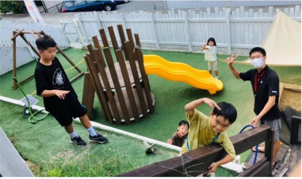 ・子供たちは、お借りしているキングダムキッズ・インターナショナルプリスクールの園舎、園庭にて、大学生スタッフの見守りの下、遊び過ごしています。