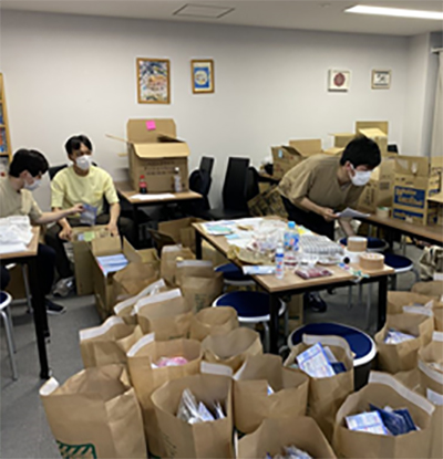 ・同じく4~5月に、手に入りづらくなっていた消毒液や、緊急事態宣言により外出できない子供たちのための本や漫画や遊び道具、施設を出た子供たちのために食品などの物資を送付。