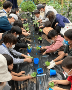 様々な家庭環境を持った子供たちに家族と共に、土づくりから、種まき、苗植え、水やり、雑草抜きを通して野菜などを育て、農業の大変さを経験させ、共に働いた人たちと野菜などを収穫して喜びを分かち合い農業の大切さを知り、それと共に食物の有難さを経験し、収穫した野菜などを材料に料理をつくり、共に生きている喜びを感じる居場所をつくる。