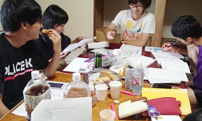 高3の受験生を対象に、夏の勉強合宿を行いました。これは、「一日勉強漬けの合宿をしたい」という子供たちの声に応え、学生スタッフが自主的に企画し実施したものです。