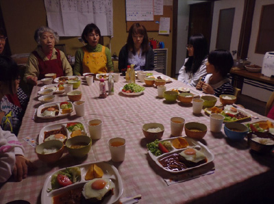(4)「みんなカフェ」:小・中学生が対象。食育講師の指導で簡単な料理を作り、食べて遊ぶ。友達づくりが自然に上手になったり、自己表現がうまくできるようになる場づくり。