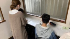 学習支援「かがやき」で個別の学習支援をしている様子