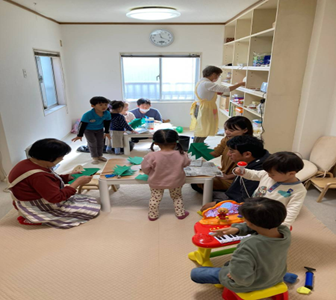 空き家を利用した、保育士等による食事会前の「親子遊び」