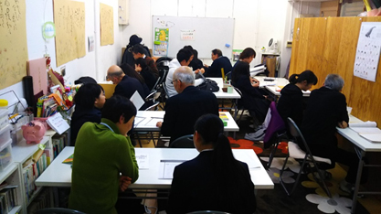 受験前のWACCA塾風景。マンツーマンで勉強を見たり、時には相談にのってもらう事もある。2018年度は9名全員が高校合格!