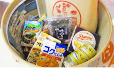 フードドライブ(食料品回収運動)によって、市民の皆さんが盛岡市役所に食料品を持ち寄り、設置されたフードバンクポストに入れてくださいます。この後、箱に詰めて希望世帯に発送します。