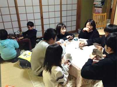 夕食後は学生や若者のボランティアと一緒にレゴやトランプ、ボードゲームなどで遊びます。笑い声の絶えない楽しいひとときです。
