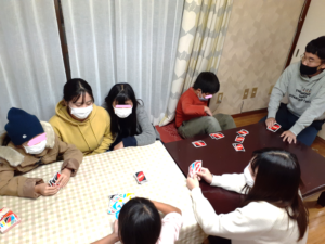 食後はよくカードゲームやボードゲームをしています。今どきの子供たちもアナログのゲームで楽しそうに遊んでいます。