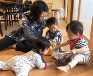 子育てサロンでは保護者の不安や悩みを聴いたり、子供の発達や特性にそって接したりすることで、日々の子育てに生かす知恵や技術を伝承し、保護者の不安を軽くする。