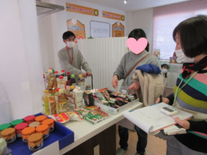 「しんぐるまざぁずフェスタ」のフードドライブの様子です。相談員が生活の「困り感」などを聞いています。受け取った食品などは、学生がまとめて運びます。